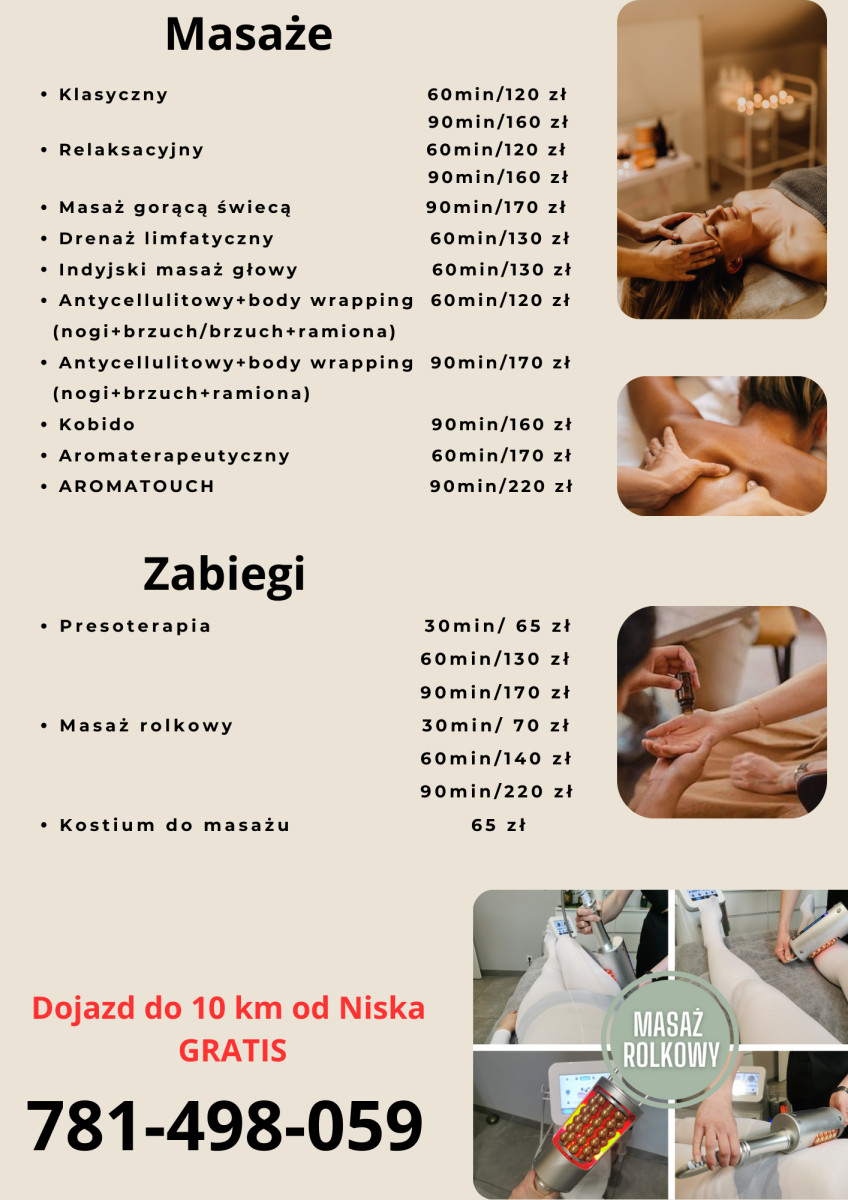 mobilny masaż Nisko, masaż z dojazdem Nisko, masaż w domu klienta, masaż relaksacyjny Nisko, masaż leczniczy Nisko, drenaż limfatyczny Nisko, kobido Nisko, masaż rolkowy Nisko, masaż aromaterapeutyczny Nisko, Marianna Czechura masaż
