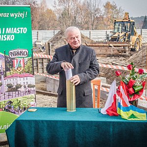 W czwartek 10 listopada odbyło się uroczyste wmurowanie kamienia węgielnego. Dokonał tego Burmistrz Niska Julian Ozimek wraz z zaproszonymi gośćmi. Wcześniej poświęcono plac budowy oraz odczytano i podpisano dokument rozpoczynający w uroczysty sposób budowę. Dokument został wmurowany w fundamenty Sali przez Burmistrza Niska.