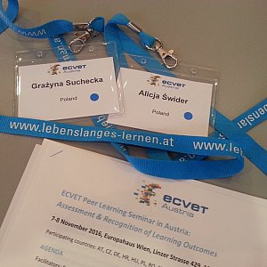 W dniach 7-8 listopada 2016 r. w Wiedniu odbyło się międzynarodowe seminarium dyskusyjne poświęcone kwestiom związanym z funkcjonowaniem systemu ECVET w krajach Unii Europejskiej, w którym Alicja Świder i Grażyna Suchecka ? reprezentowały Regionalne Centrum Edukacji Zawodowej w Nisku.