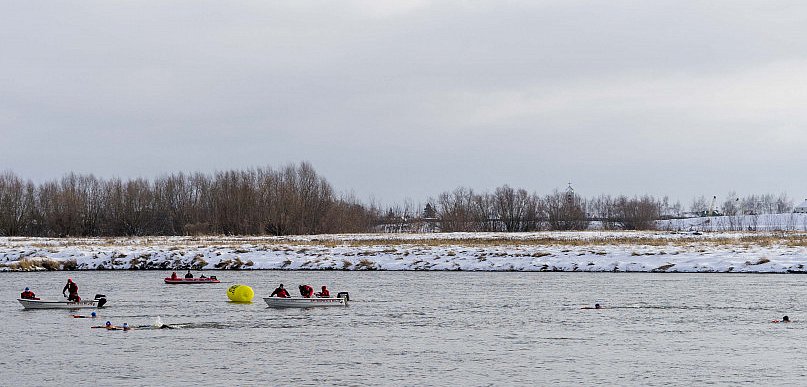 Morsy pokonały dystans około 300m w lodowatej wodzie Wisły.