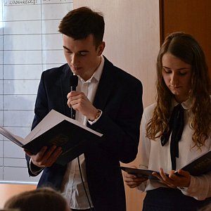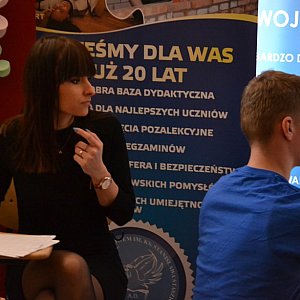 Przed wręczeniem nagród gimnazjaliści mieli możliwość dowiedzieć się czegoś o szkole, zaprezentowany został filmik promocyjny nakręcony przez naszych uczniów, ponadto poruszony został temat ważny w kontekście nauki języków obcych, mianowicie uczniowie klasy II i III LO opowiedzieli o programie Erasmus Plus, w którym szkoła od tego roku uczestniczy. Licealiści przedstawili ogólne informacje na temat wymiany Erasmus a także opowiedzieli o pierwszym wyjeździe w ramach tej wymiany – w grudniu ubiegłego roku do Niemiec.
