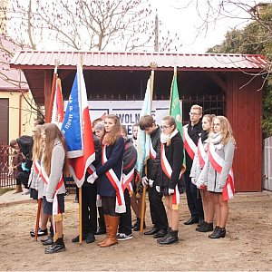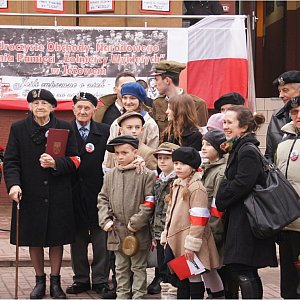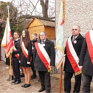 Pod dachem lutowego zachmurzonego, ale nie deszczowego nieba znowu zabrzmiała melodia i słowa Mazurka Dąbrowskiego. Gospodarz Gminy Jeżowe Marek Stępak przywitał serdecznie zebranych gości, wśród których byli przede wszystkim Weterani Wojska Polskiego, przedstawiciele Światowego Związku Żołnierzy Armii Krajowej Podokręgu Rzeszowskiego: kpt. Janina Wierzbicka-Kopeć - łączniczka płk. Łukasza Cieplińskiego, kpt. Stefan Michalczak, kpt. Edward Sarna, por. Władysław Koziarz, kol. Alfred Kłęk, sekretarz ŚZŻAK Podokręgu Rzeszów Agnieszka Iwaszek, dalej: kilkanaście pocztów sztandarowych strażackich, szkolnych, rolniczych, nauczyciele, wychowawcy, dyrektorzy szkół, dyrektorzy jednostek samorządowych, harcerze z ZHP i ZHR ze swoimi przełożonymi, strażacy z całej gminy Jeżowe, samorządowcy różnych szczebli, przedstawiciel posła RP Mieczysława Miazgi, młodzież, dzieci z rodzicami, mieszkańcy sąsiednich miejscowości, sekretarz gminy Kamień, biegacze z naszej gminy i spoza gminy od Rzeszowa po Tarnobrzeg.