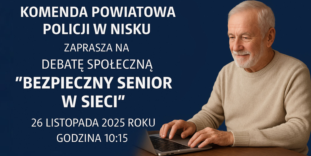 Komenda Powiatowa Policji w Nisku serdecznie zaprasza wszystkich seniorów na debatę społeczną, która odbędzie się 26 listopada 2025 roku o godzinie 10:15 w Klubie Seniora w Nisku przy ul. Sandomierskiej 8.