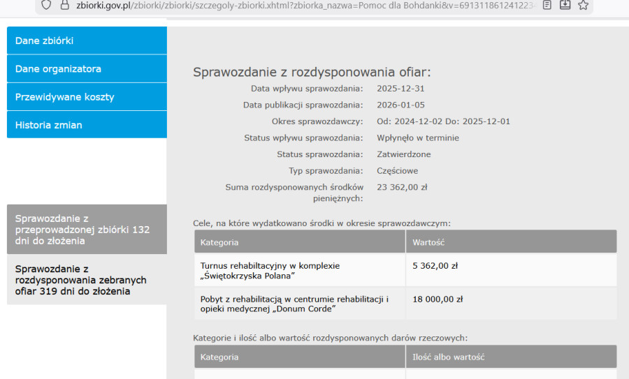 Sytuacja ta nie przesądza o nieprawidłowościach, ale pokazuje, że w praktyce system opiera się głównie na zaufaniu i doraźnej weryfikacji. Bowiem z danych opublikowanych w systemie zbiórek publicznych wynika, że w okresie od grudnia 2024 do grudnia 2025 wykazano łącznie 35 604,31 zł zebranych środków.