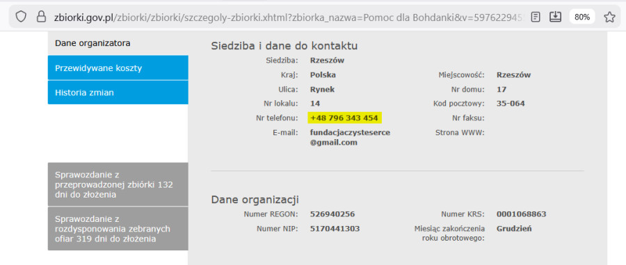 Organizacja nie posiada własnej strony internetowej, nie prowadzi rozbudowanej komunikacji publicznej w mediach społecznościowych. Podawany w systemie zbiórek numer telefonu po wpisaniu w wyszukiwarkę pojawia się także w kontekście ogłoszeń pracy dla cudzoziemców we Wrocławiu ze stawką 15-25zł za godz.