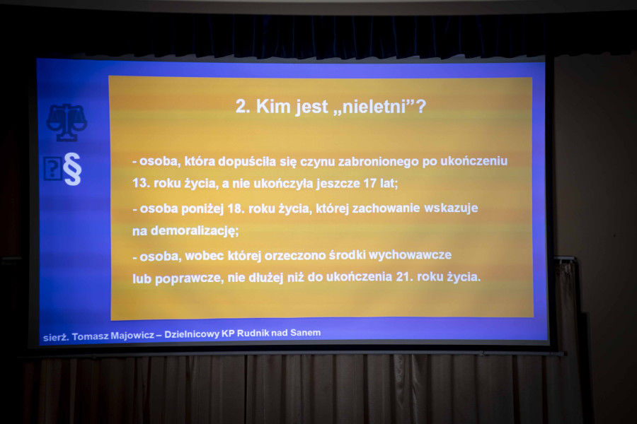 – „Wielu młodych ludzi uważa, że jako dzieci nic im nie grozi. Tymczasem polskie prawo mówi jasno: nawet nieletni ponosi konsekwencje swoich czynów. W szczególnych przypadkach już od piętnastego roku życia” – podkreślał sierż. Majowicz