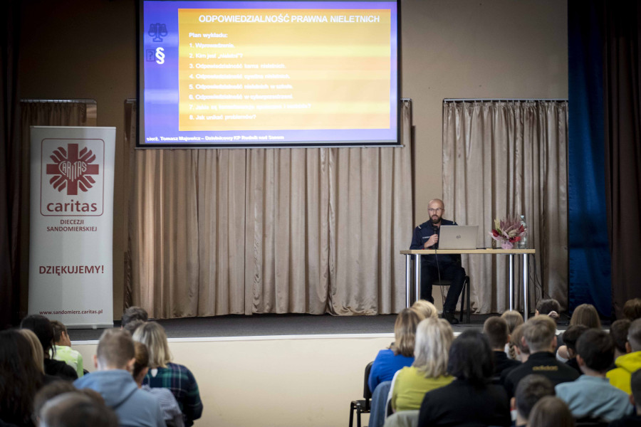 Wczoraj, w Ośrodku Interwencji Kryzysowej przy Centrum Caritas w Rudniku nad Sanem odbyła się wyjątkowa konferencja skierowana do dzieci i młodzieży ze szkół z terenu całego powiatu niżańskiego. Wydarzenie miało charakter edukacyjno-profilaktyczny i poświęcone było odpowiedzialności prawnej nieletnich oraz zagadnieniom związanym z bezpieczeństwem i etyką w życiu codziennym oraz w Internecie.
